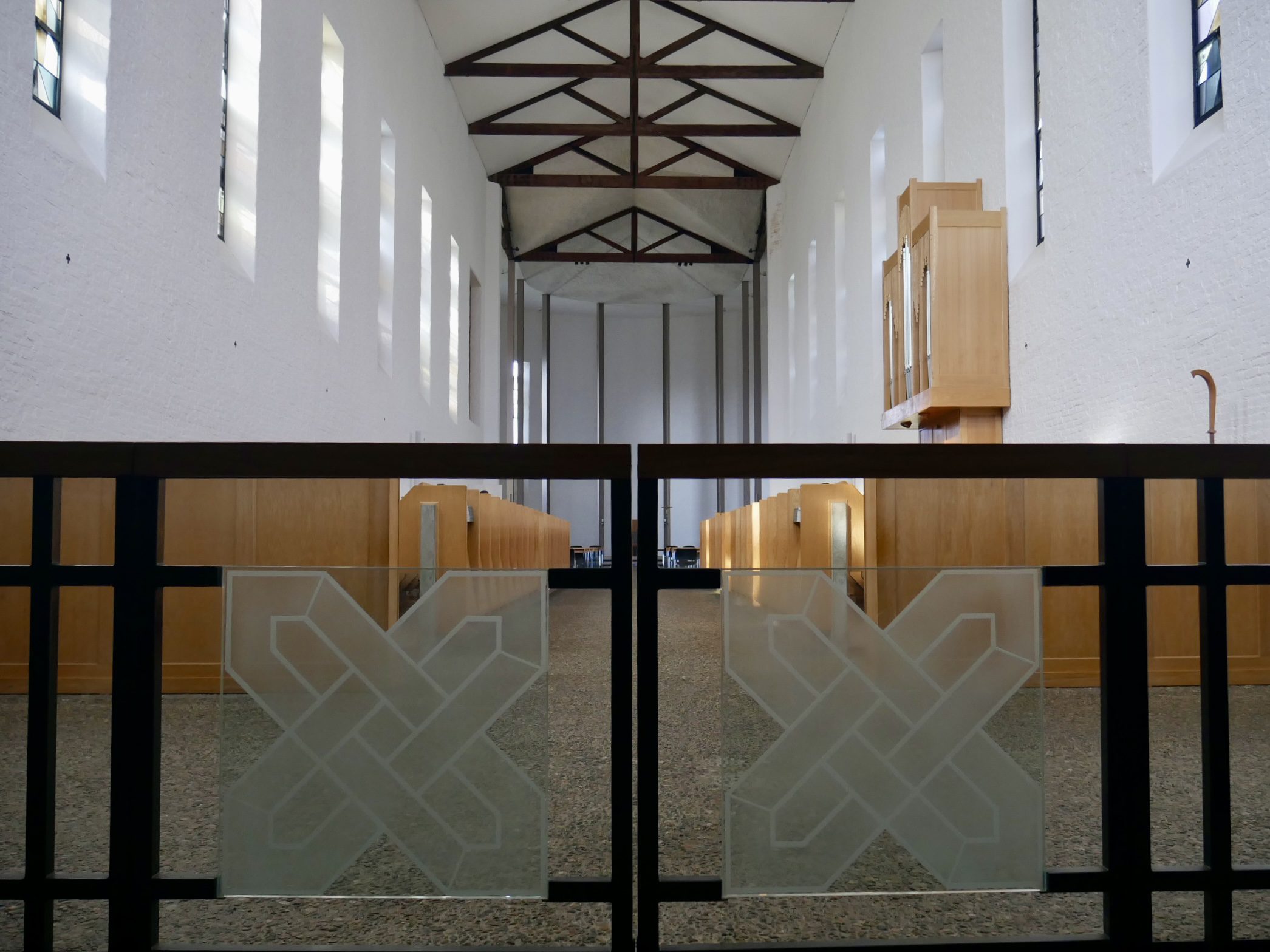 On silent retreat, dining halls are often set up with rows of seats and tables all facing out the window,